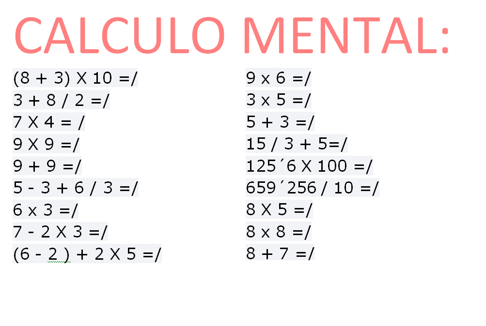 Ejercicios Matematicos Mentales : Ejercicios Mentales Matematicos Para Secundaria ... - Para cada uno de ellos: